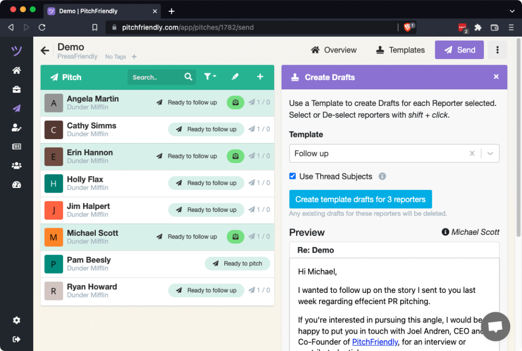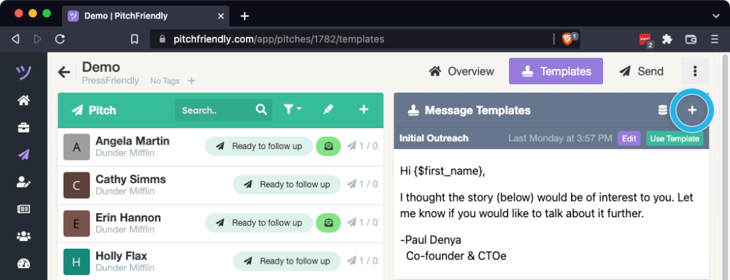 Creating multiple templates for each pitch gives you options for how you communicate. In addition to sending followups, you can have different pitch text for different segments of reporters on your first send, different subjects for followups with reporters who read the first message vs those who didn't, and more.