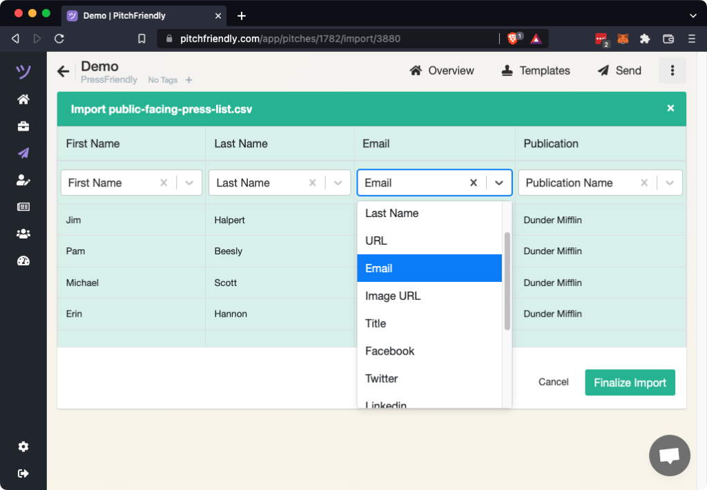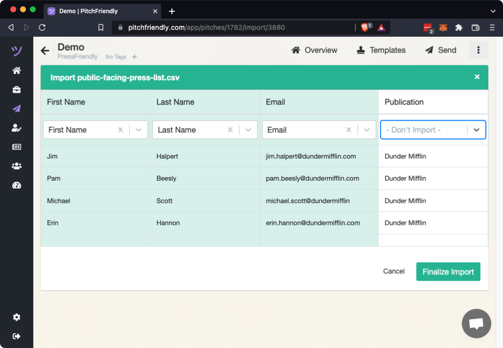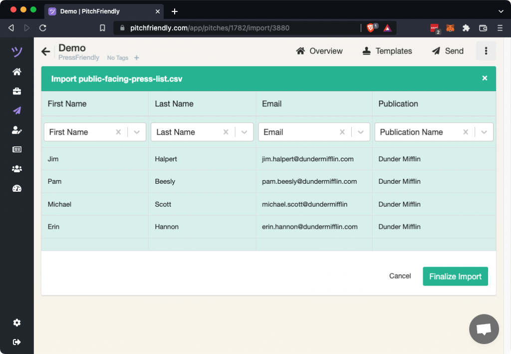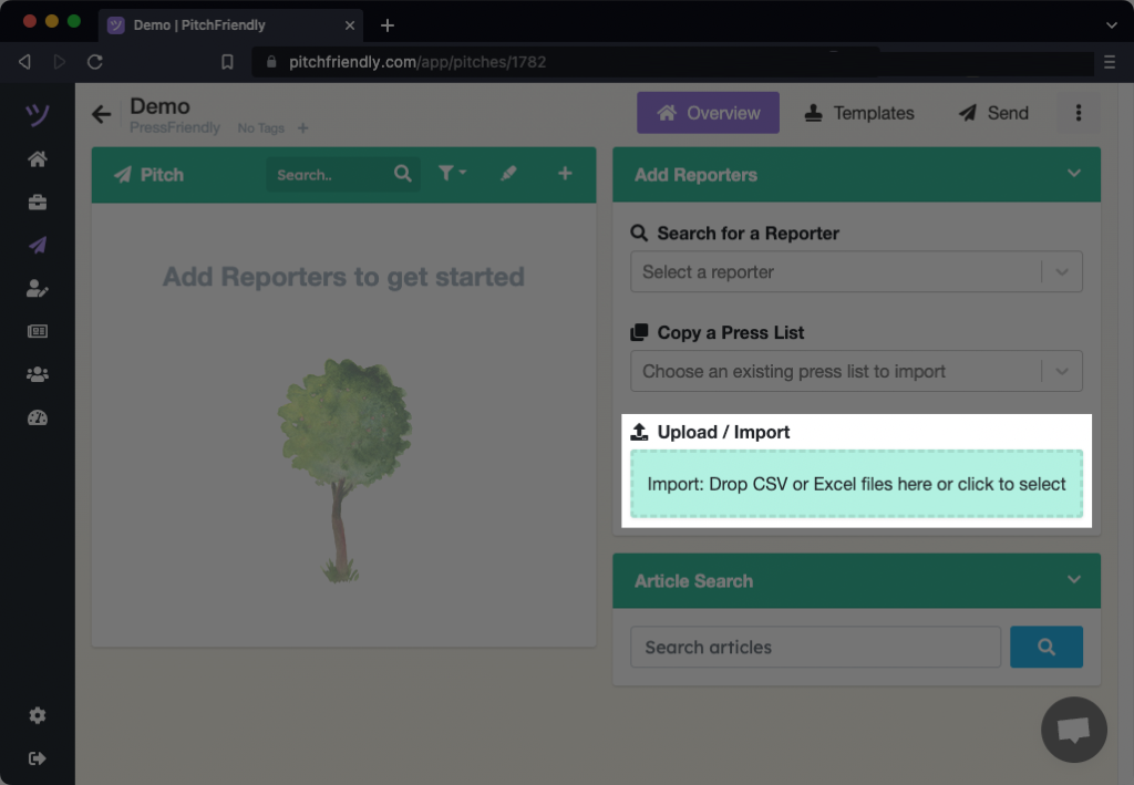 If you already have a spreadsheet of reporters you'd like to pitch, uploading it to PitchFriendly is fast and easy.
