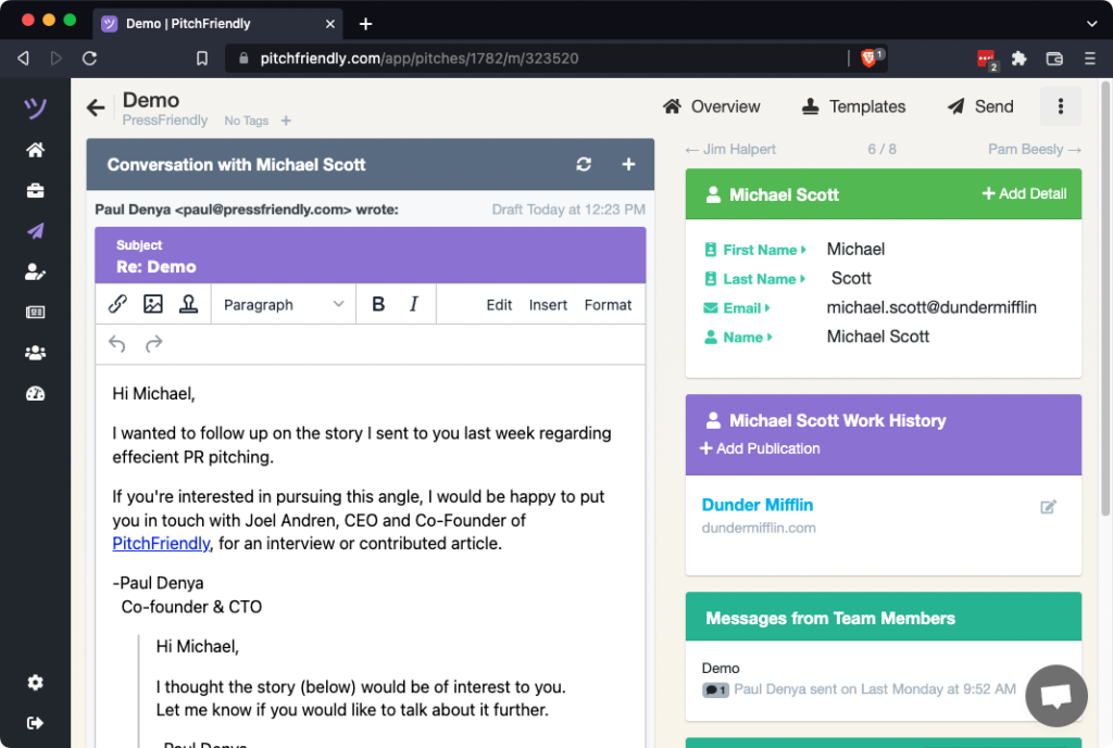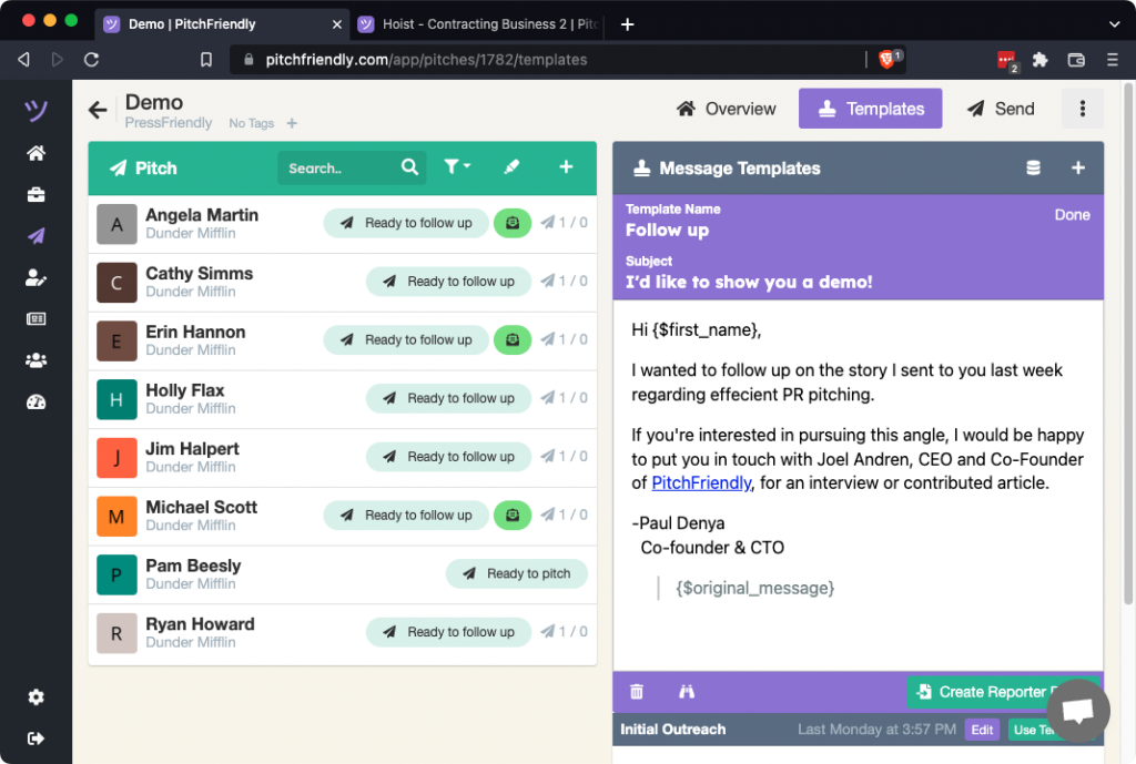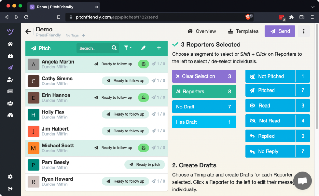 Head over to the Send view and select the segment you'd like to pitch to. Here I've selected the Read segment, which is only reporters who've read the email. One popular option is to create a second followup template to send different followups with different subjects depending on whether the reporter has read the email.